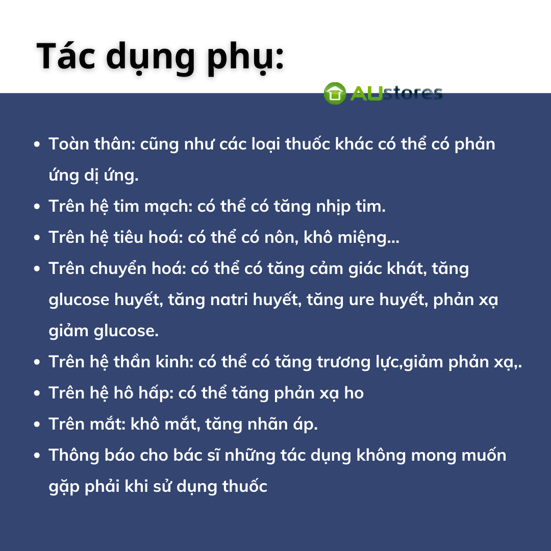 Trên chuyển hoá: có thể có tăng cảm giác khát, tăng glucose huyết, tăng natri huyết, tăng ure huyết, phản xạ giảm glucose.